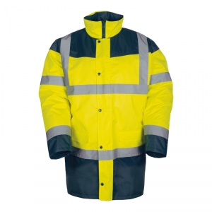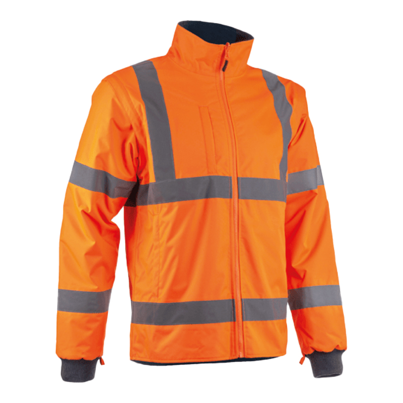 Veste 2/1 HV jaune ou orange /Marine OXFORD 100% Polyester enduit Polyuréthane DOUBLURE POLAIRE: 100% Polyester - 280g/m2 (Corps) Col montant doublé en polaire Zip central 2 poches basses zippées sous passepoil 1 poche poitrine [...]
