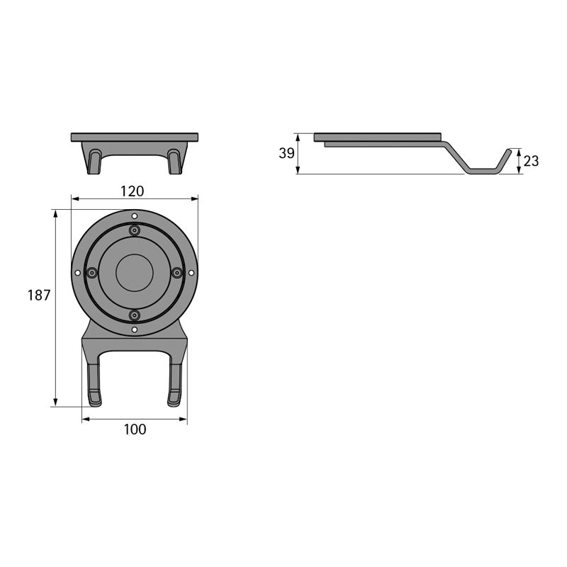 Crochet pour accrocher le porte-documents, le sac à main, le sac à dos, etc.Montage sous le plateau de la table.Pivotant sur 360°.Kit composé de :