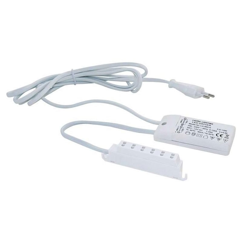 Pour tous luminaires équipés de LED 12 V constant : bande LED, spots, réglettes...Câble d’alimentation secteur longueur 2000 mm.Sortie longueur 150 mm avec répartiteur pour 6 prises AMP.