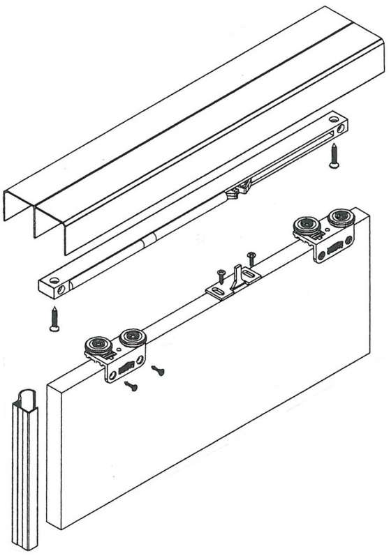 Prévoir 1 ou 2 amortisseurs par vantail.Se fixe au fond du profil de guidage.