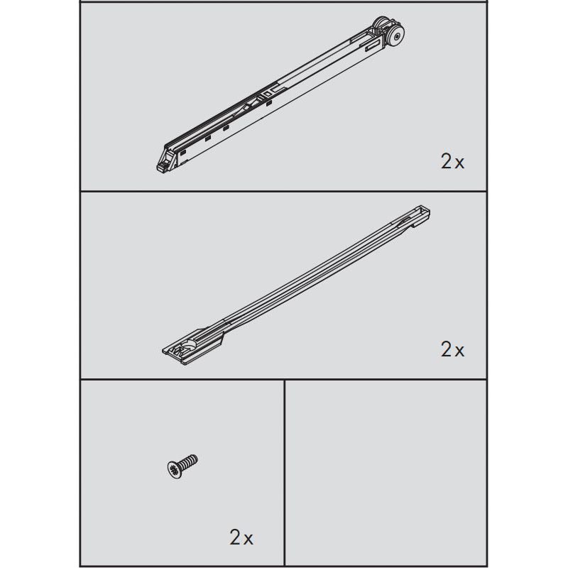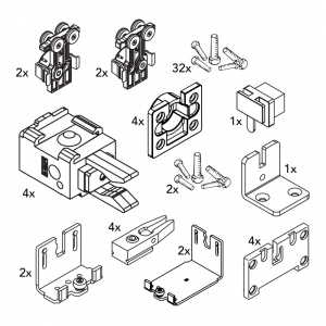 Amortisseur intégré au rail et fixé sur la garniture.Jeu de 2.Largeur mini du vantail : amorti d'un seul côté : 420 mm. amorti des 2 côtés : 620 mm.