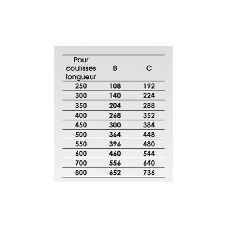 Montage sur tiroirs bois équipés de coulisses à galets ou à billes.