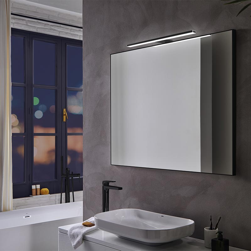 Pose sur miroir ou sur armoire de salle de bains. Fixation sur chant.