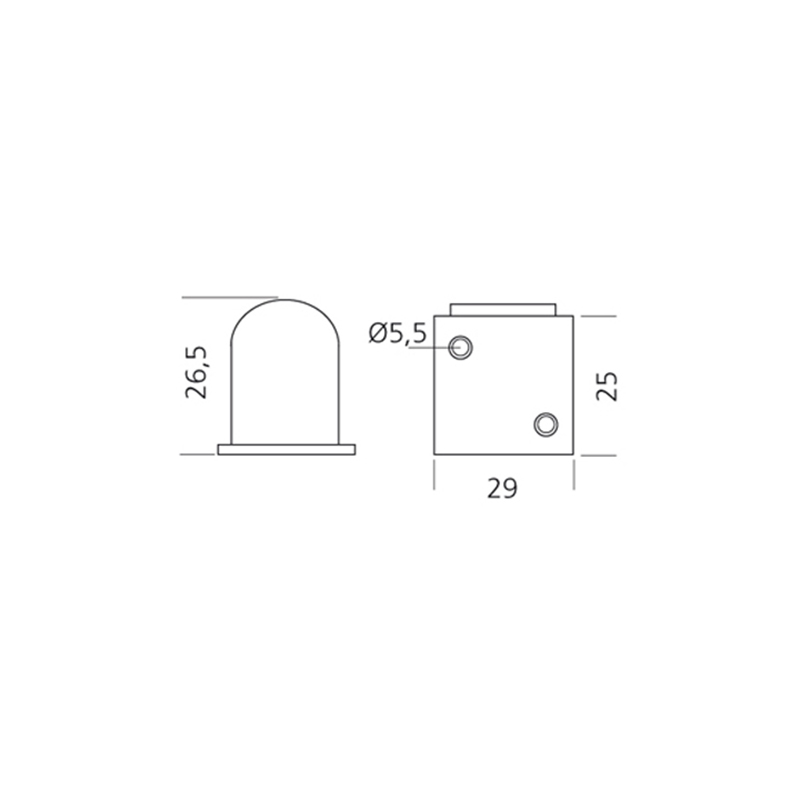 Arrêt coudé du haut à visser, pour espagnolette de volet.Platine 2 trous Ø 5,5mm.