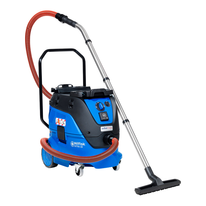 livré avec flexible antistatique Ø 32 mm 4m, 3 tubes droits inox 350 mm, poignée coudée inox, embouchure sol poussières 300 mm, buse plate biseautée, brosse ronde, brosse universelle, filtre PTFE lavable classe M, 1 sac d'évacuation plastique, 1 sac à poussière synthétique.