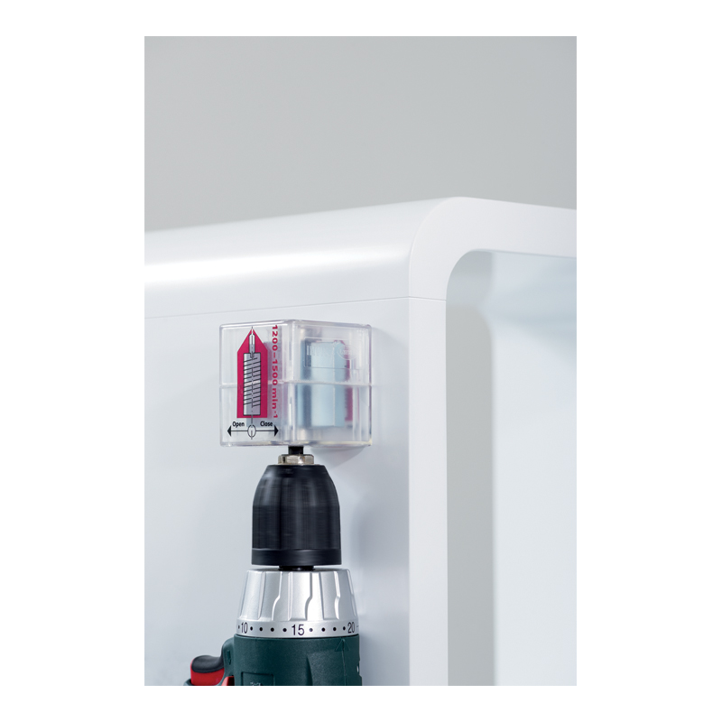 Les éléments d'assemblage Invis Mx2 sont d'abord vissés dans les perçages de 12mm.On installe le MiniMag sur la mandrin de la visseuse, la rotation effectuées, les deux boulons Invis se rapprochent pour que l'assemblage se fasse avec une tention allant juqu'à 250KG par élément.