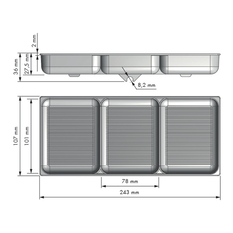 Bac à 3 compartiments pour pose au fond du porte pantalon coulissant réf. 375 40060 07010 et 375 40060 09010.