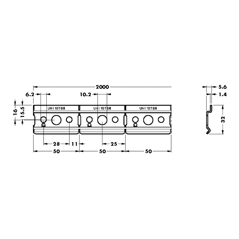 Banc sécable, sans outils, tous les 50mm.