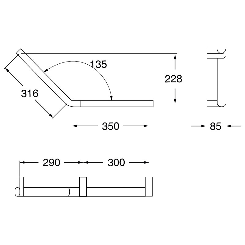 En aluminium thermolaqué anti-rayures, avec protection antibactérienne.Profil triangulaire pour une meilleure préhension.Fixation invisible 3 points.Livré avec vis inox ∅6 x 70 mm et chevilles.