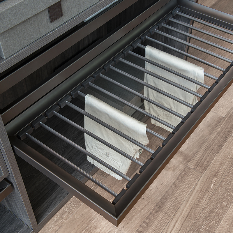 Avec joint souple sur la partie supérieure de la barre pour permettre au pantalon de ne pas glisser.Barre fournie avec supports en nylon facilitant le positionnement sur le cadre et le glissement à l'intérieur du tiroir.