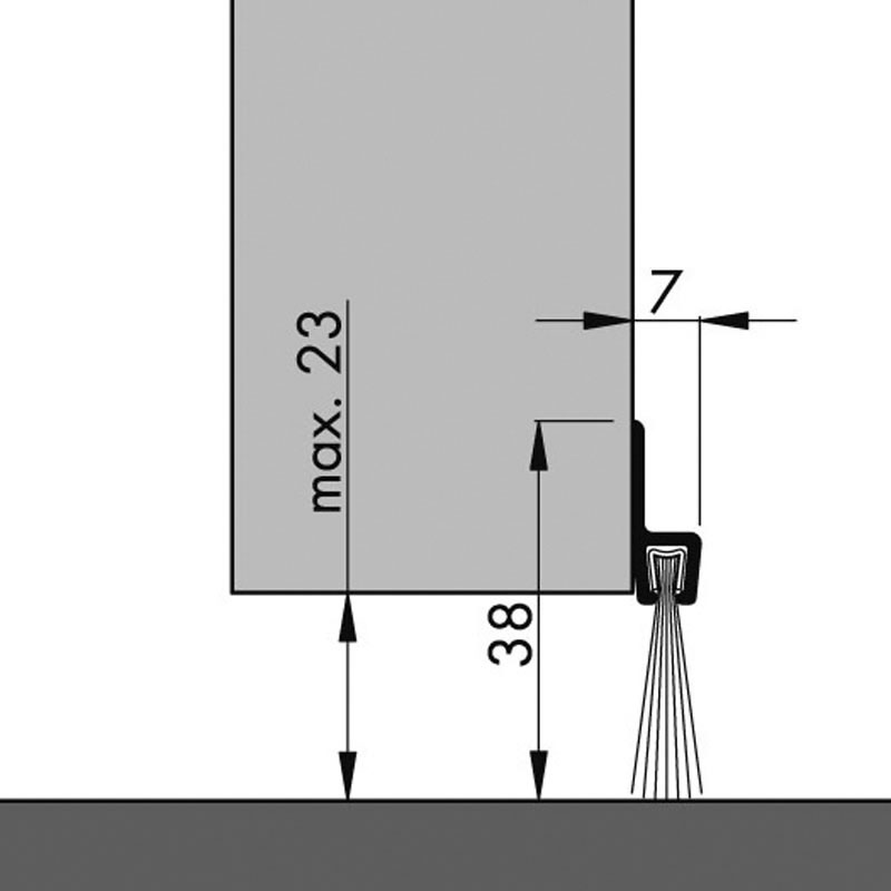 Bas de porte en aluminium muni d'une brosse en polypropylène noir. Pour isolation des portes inérieures ou extérieures classiques, coulissantes et volets roulants. Idéal pour les portes de garage car résistant au contact d'une chape en béton. Ne pas utiliser sur moquette et parquet.Pose en applique horizontale ou verticale, par vis.Profil recoupable et prépercé.