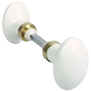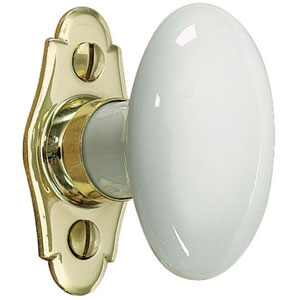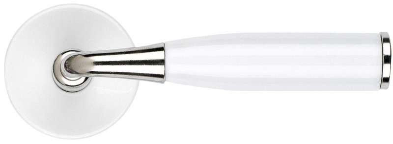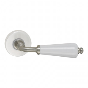 Béquille simple porcelaine et laiton décor nickelé, sans rosace.Livré avec carré de 7 mm et fixations.Pour porte intérieure épaisseur standard 40 mm.