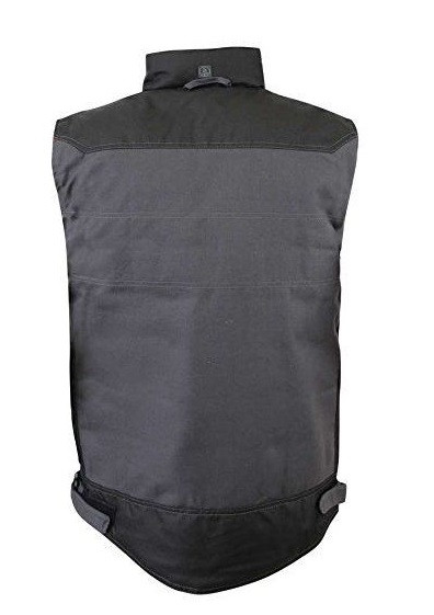 Col montant emmanchures élastiquées devant : fermeture à glissière sous patte 1 poche poitrine gauche zippée à soufflets 1 poche poitrine droite à rabat fermé par auto-agrippant + porte badge escamotable + ouverture pour kit mains-libres 1 poche poitrine intérieure 2 poches basses repose-main empiècements et éléments renforcés en Oxford résistant 900D imperméable taille resserrable par pattes auto-agrippantes sur les côtés dos long patte d'accrochage jeu de surpiqûres 60% coton 40% polyester - 300 gr/m'b2.