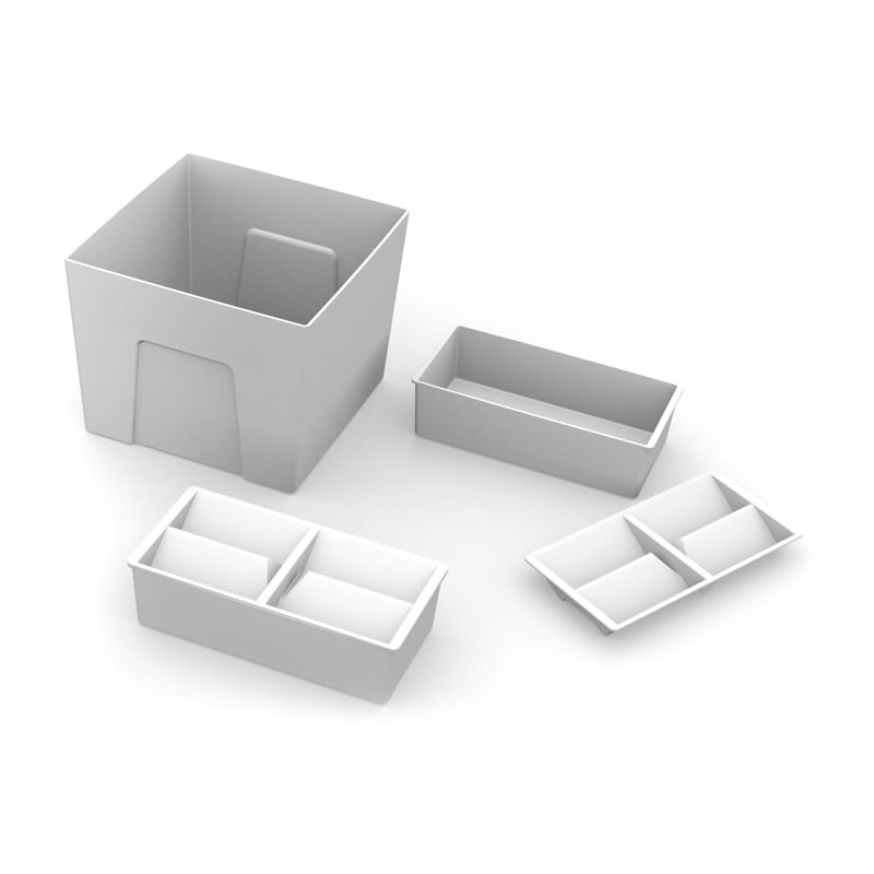 Boite à multiples rangements amovibles pour une utilisation hors du tiroir.Composé de :- 1 bac carré- 2 bacs rectangulaires- 2 bacs range-cosmétique