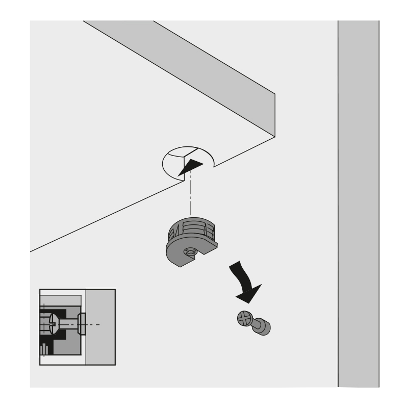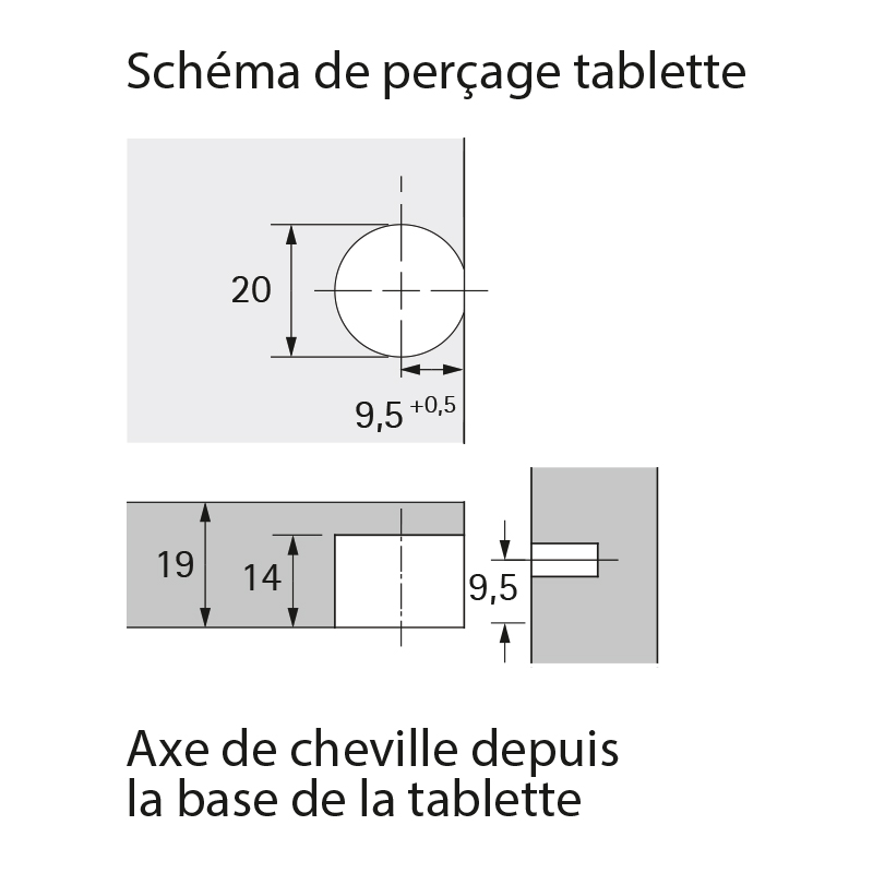 Pour pose de tablette verticale.Réglage de l'excentrique par le dessus ou par le dessous.