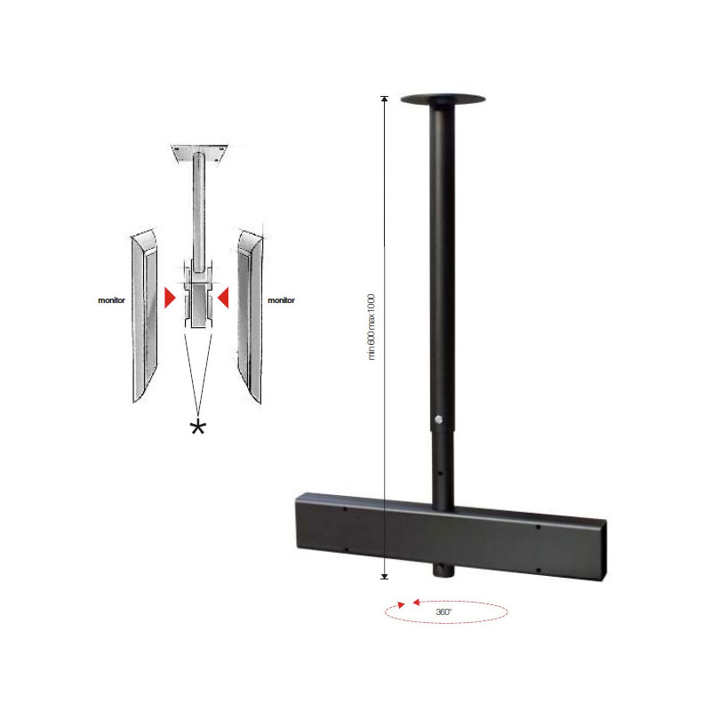 Bras extensible utilisé pour fixation au plafond d'un ou deux écrans dos à dos.Passage de câble intégré.A combiner avec les supports TV inclinables (143 10300 05202 et 143 10300 06302).