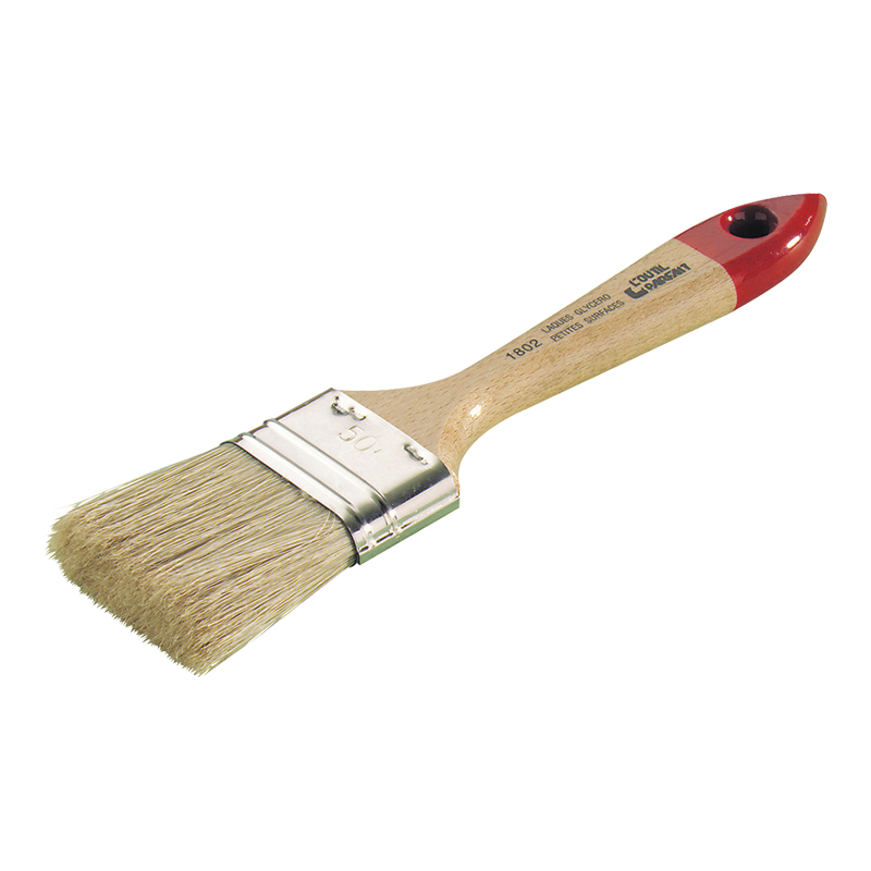 Semi-épaisse mélange soie et synthétique virole acier nickelé manche bois verni.