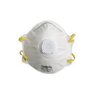 Masque faciales filtrantes en fibres synthétiques non tissées.Barette nasale de réglage.Lanière élastique.Valve d'expiration haute performance.Conforme à la norme EN149.