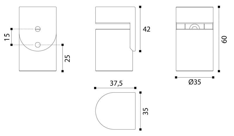 Butoir en deux parties : une partie à fixer au sol, l'autre à fixer sur la porte.