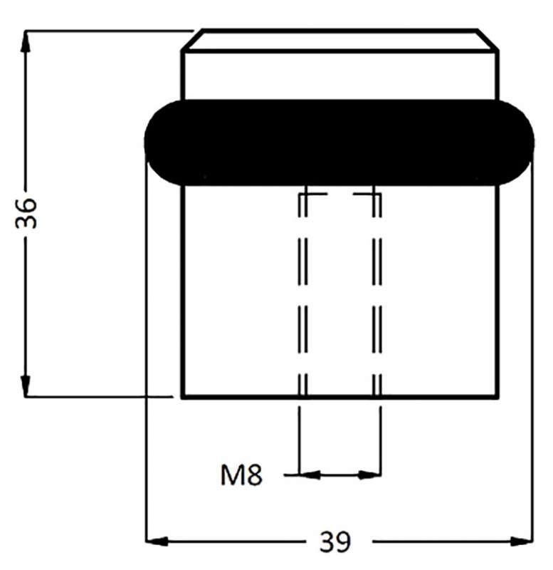 Butoir en alu extrudé avec joint amortisseur souple noir.Fixation au sol par vis M8.