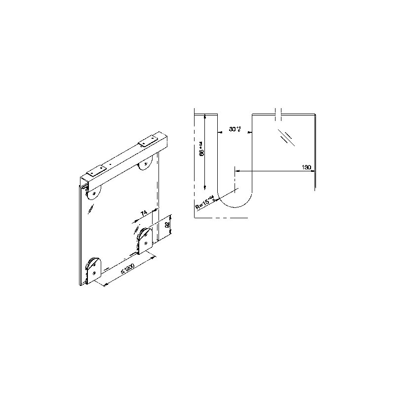 Se clipse sur les suspensions et les guides inférieurs.Entailles du verre nécessaires.Vendu à la pièce.Prévoir 2 pièces par fixation ou par guide verre.