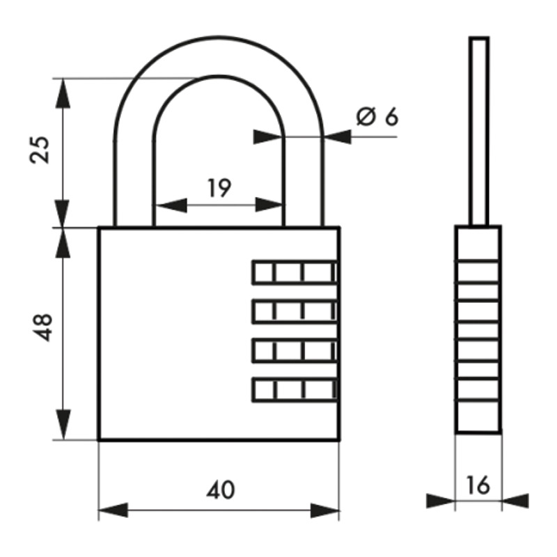 Corps alliage moulé.Anse acier nickelé.Mécanisme à 4 viroles.Combinaison modifiable (10 000 combinaisons possibles).Utilisation en intérieur.