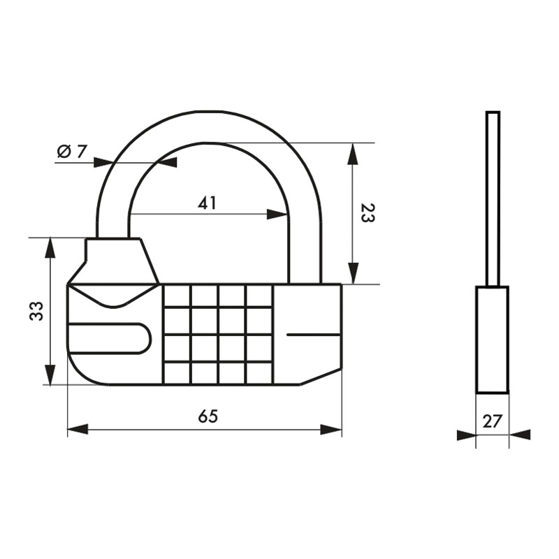Corps alliage monobloc. Mécanisme à 5 viroles.Anse acier cémenté nickelé.Verrouillage par billes acier.Combinaison modifiable (10 000 combinaisons possibles).Utilisation en intérieur.