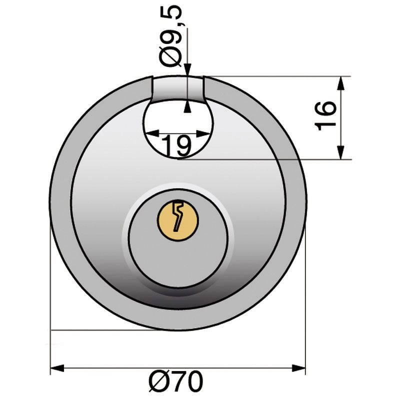 Corps et anse intégrée inox.Mécanisme à goupilles.Livré avec 2 clés laiton nickelé.Utilisable en extérieur.Idéal pour utilisation avec chaîne.