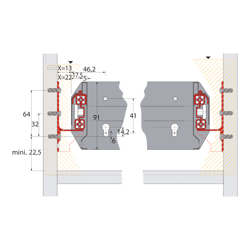 Cadre métallique à largeur réglable.Côtés double paroi dissimilant les coulisses.Pour caisson de profondeur 400 mm.Utilisable avec coulisse Quadro Duplex 60.Livré sans coulisse.
