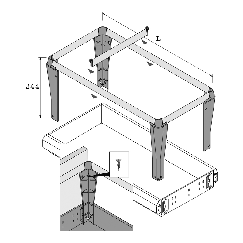 Se pose sur tiroir métallique de caisson d'armoire.Systema Top 2000 profondeur 400.Pour caisson de largeur intérieur de 392 mm.