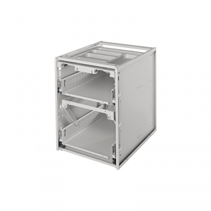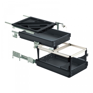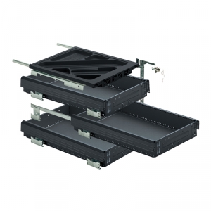 Tous les perçages de positionnement des coulisses, fixations et réglages se retrouvent sur les flancs métalliques livrés dans ce kit.Rapidité d'assemblage et de pose dans le caisson sans prise de meusre avec juste quelques visCoulisses et verrouillage sont prémontés. Chaque tiroir possède un réglage façade 3D. Hauteur intérieure caisson 509 soit 7HE+1.
