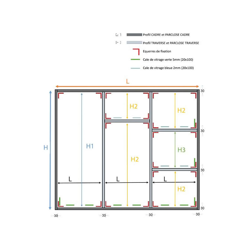 Les cales de positionnement pour verrière décorative V30 permettent de placer et maintenir le verre ou autres habillages bien en place.Cales épaisseur 2mm : pose dans les profils de séparation verrière V30.Cales épaisseur 5mm : pose dans les profils cadre verrière V30.