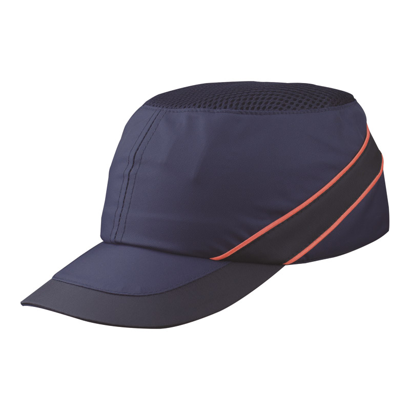 Casquette anti-heurt type base-ball, en textile polyester/enduit polyuréthane très aérée, partie supérieur en maille mesh, équipée d'une coque interne en polyéthylène et d'une mousse confort en EVA pour amortir les chocs