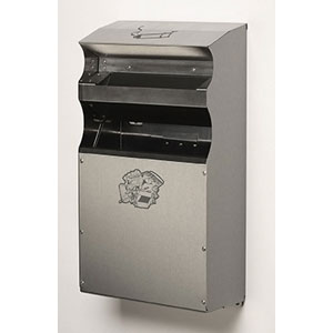 Cendrier mural en tôle pré galvanisée par electrolyse et découpée par laser, avec un revêtement par poudre époxy Anti-UV.Existe en version avec ou sans toît de protection.Vidage facile par basculement.Livré avec fixations.Diamètre cendrier : 90mmDiamètre du toit : 120mmHauteur sans toit : 100mmHauteur avec toit inox : 220mm