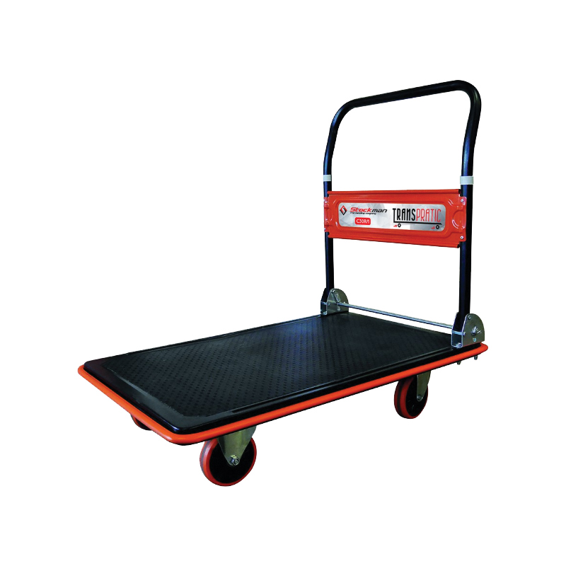 équipé de 4 roues à bandage caoutchouc non marquant dont 2 pivotantes