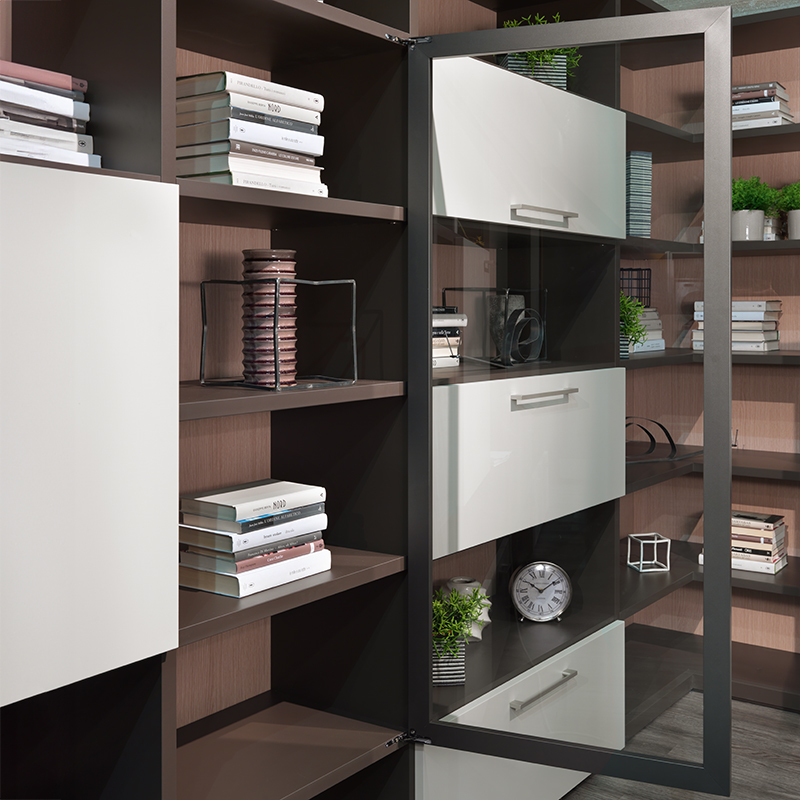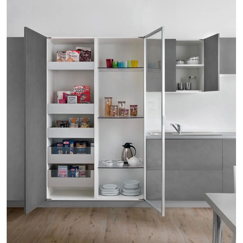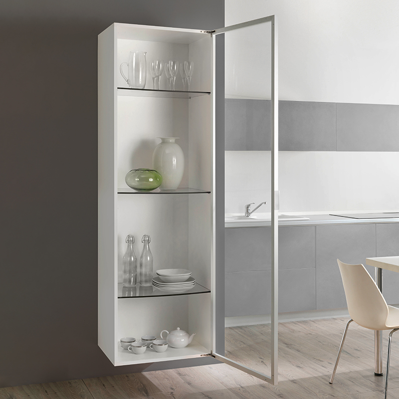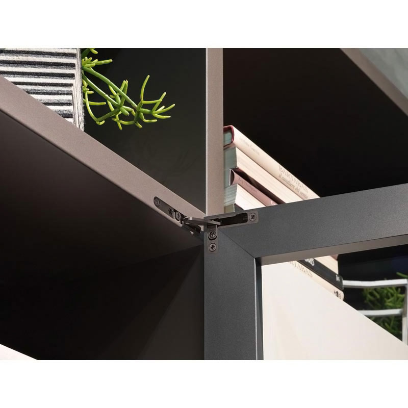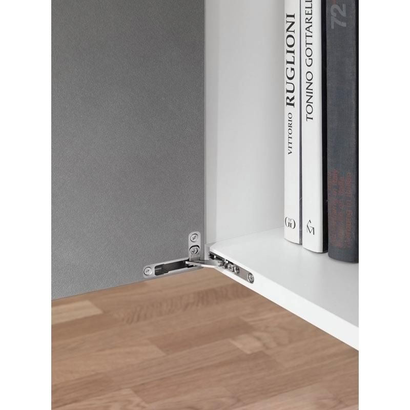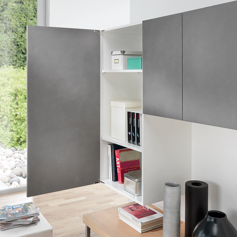 Les charnières Air, avec un système d'amortissement intégré ou avec ouverture Push, ont un esthétique compact et discret. Elles peuvent être installées dans le panneau haut et bas du meuble.