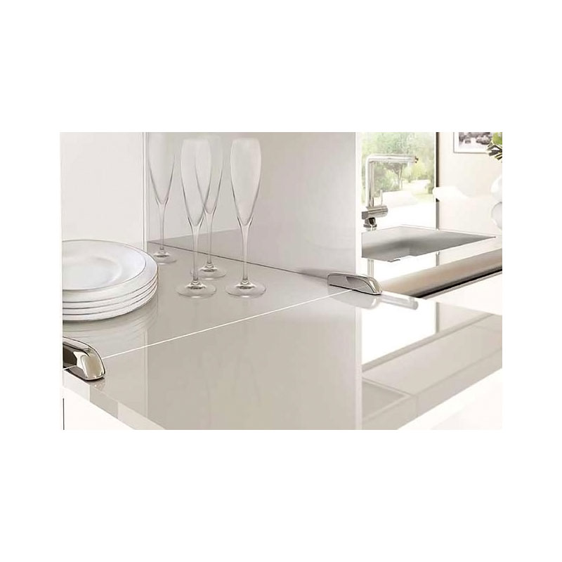 PACTA est une charnière compacte et épurée pour porte abattante qui permet, sans l'aide d'éléments supplémentaires tels que des câbles ou des compas, d'ouvrir et de fermer les portes. Le mouvement d'ouverture est amorti ; la descente de la porte est douce et progressive. En position totalement ouverte, la porte et la base du meuble sont parfaitement alignées et créent un plan régulier et uniforme.Disponible aussi en version Push, PACTA offre plusieurs finitions et peut être utilisé dans différents cas de figure : salles de séjour et cuisines, dans les chambres d'enfants, pour créer un bureau ou bien dans des chambres d'hôtel, ou il peut être utilisé comme bar, pour créer des tabletttes de travail ou des petits bureaux.