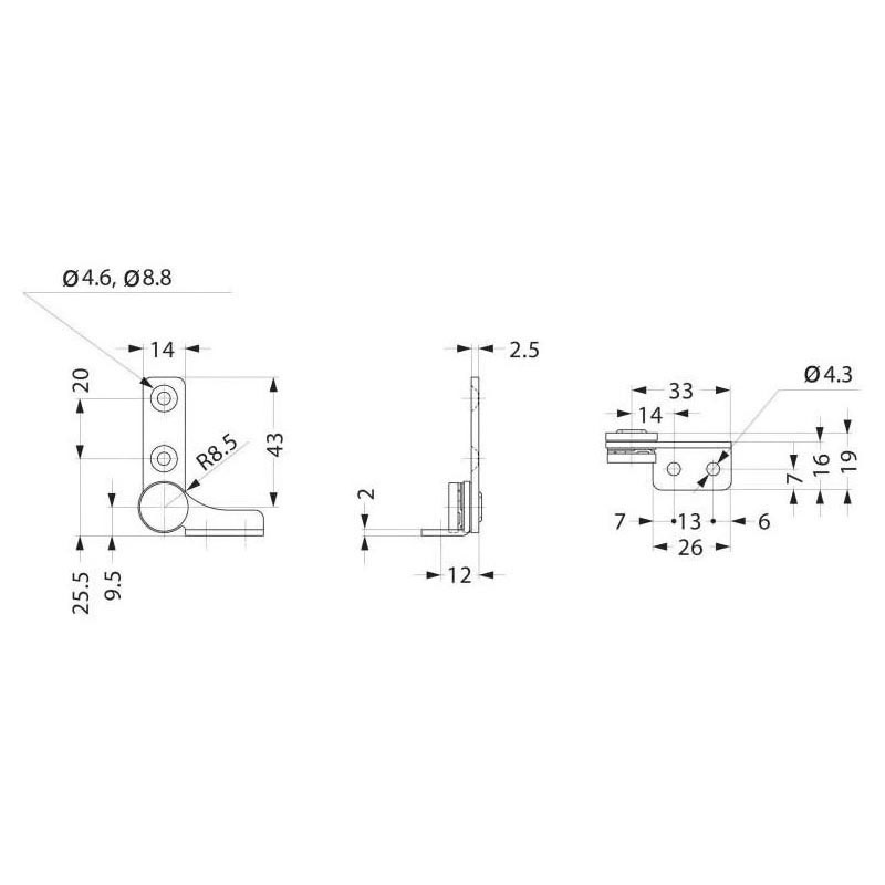 Le vantail rentre dans la position d'arrivée.Pose en applique.Fixation sur plat.