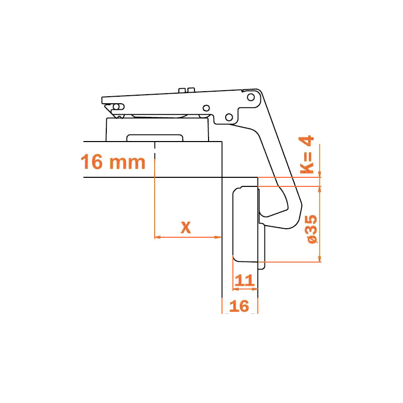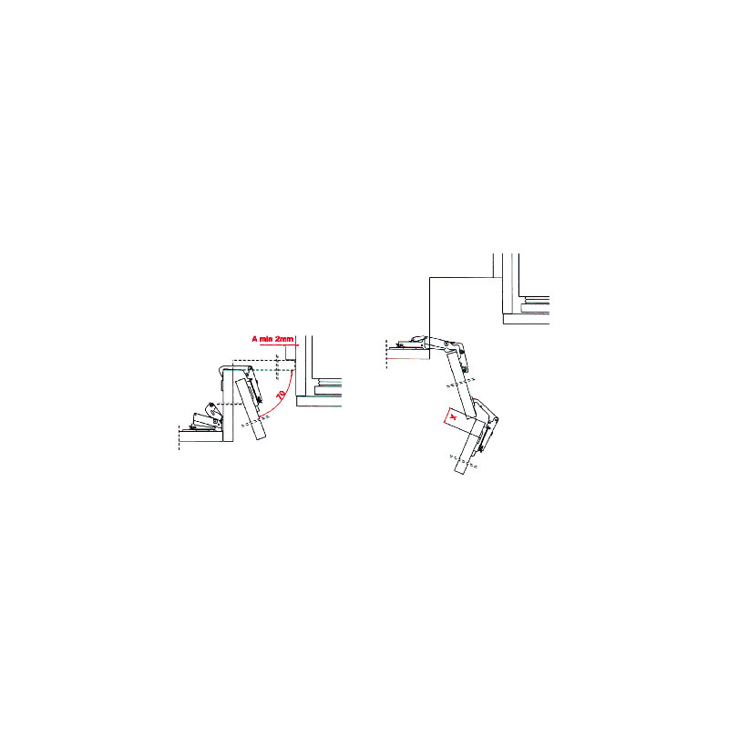Charnière invisible Salice avec ressort pour meubles d'angle.
