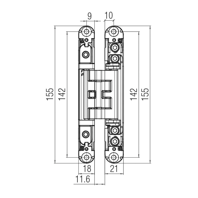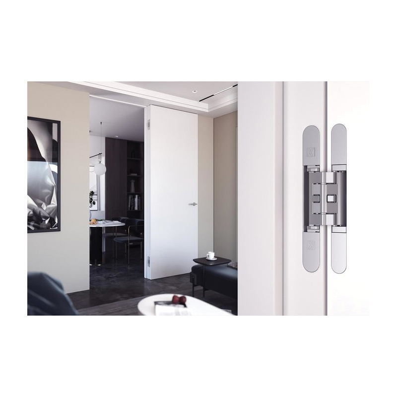 Charnière invisible sur 5 pivots d'axe de rotations.Pour porte d'agencement (placard/dressing) ou porte d'intérieur bâtiment d'épaisseur mini 25mm.Réglable en 3 dimensions.A entailler.Réversible Droite/Gauche.Certifiée CE et testée feu 30 minutes.Finition de couleur en Haute Définition HD.Charge 60 kg pour 2/3 charnières selon L.2100 x l. 900 mm.