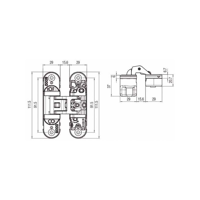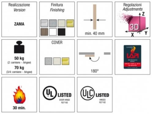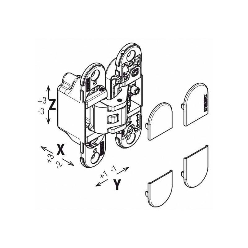 Charnière invisible sur 5 pivots d’axe de rotations.Pour porte d’intérieur réglable en 3 dimensions.A entailler.Réversible.Certifiée et testée feu.Charge 50 kg pour 2 charnières selon L. 2100 x l. 900 mm.Charge 70 kg pour 3 charnières selon L. 2100 x l. 900 mm.