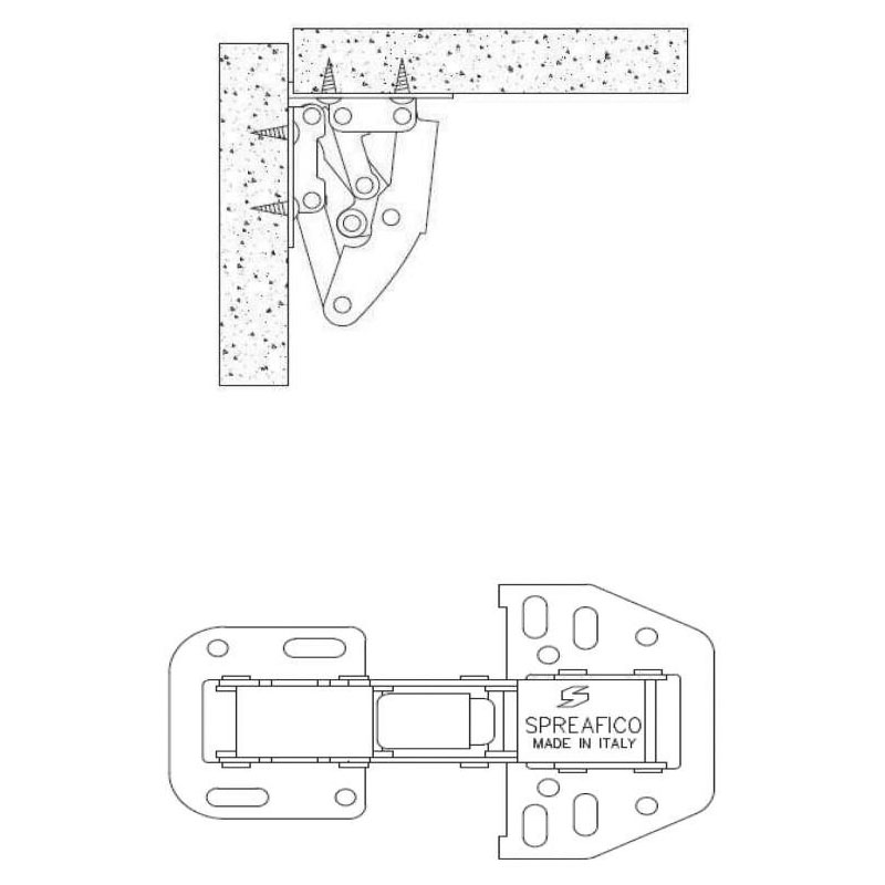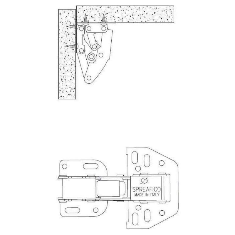 Charnière à double ressort.Positionnement rapide de la charnière.Platine côté caisson avec butée de positionnement.Avec jeu minima de 2 mm entre porte et caisson.Pour porte avec recouvrement 16 mm maxi.Platine élargie pour une meilleure tenue.Pour panneaux épaisseur 16 mmLongueur ouverte 97 mmLargeur 60 mm