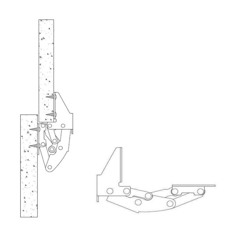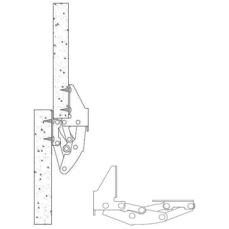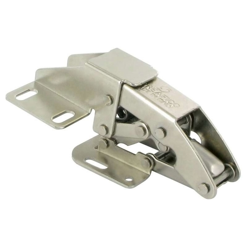 Charnière à double ressort de type caravane pour porte battante.Réglable horizontalement et verticalement.Conçue pour maintenir la porte en position ouverte.