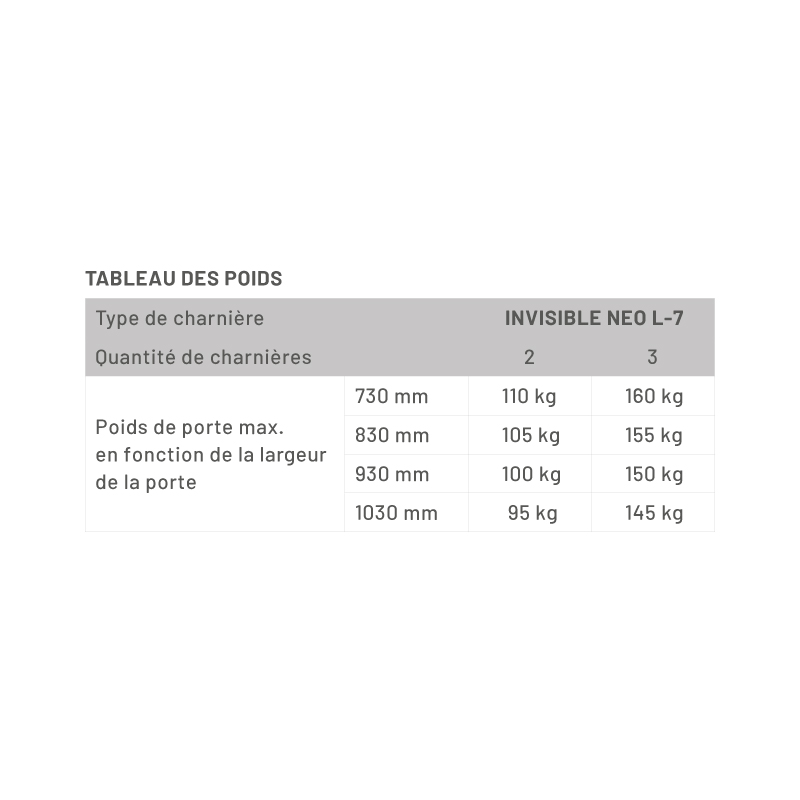 Charnière invisible NEO L-7 au design pur sans vis apparentes et de haute qualité.