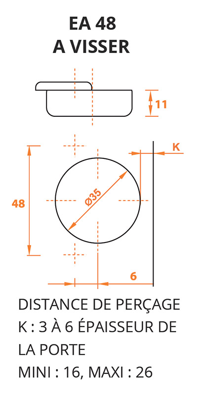 S = Épaisseur du côtéD = Recouvrement désiréT = Épaisseur maximale de la porteK = Distance de perçageA = JeuL = Distance entre la porte et le côtéH = Épaisseur de l'embase