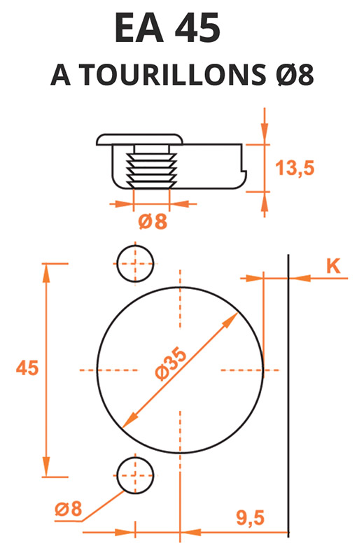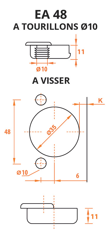 Important : Les charnières Salice de la série 800 utilisent uniquement les embases traditionnelles cruciforme acier.