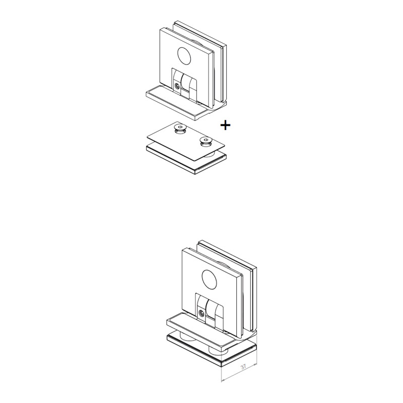 Le kit d'adaptation permet de transformer une charnière pour fixation murale en une charnière glace/glace 90°.