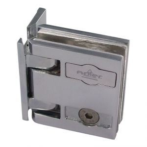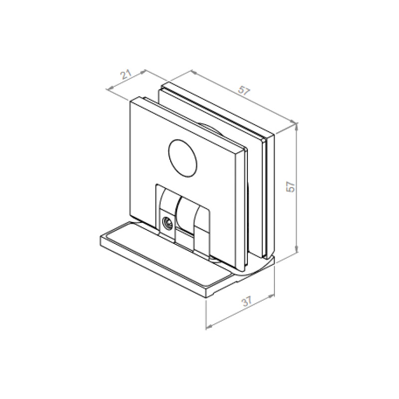 Charnière MINIMA mur/glace à demi-platine, à angle réglable et rappel automatique +/- 10°.Montage avec encoche dans le verre.Livrée avec caches-vis et cales épaisseur 2mm pour verre de 8mm.Jeu de 2 charnières.