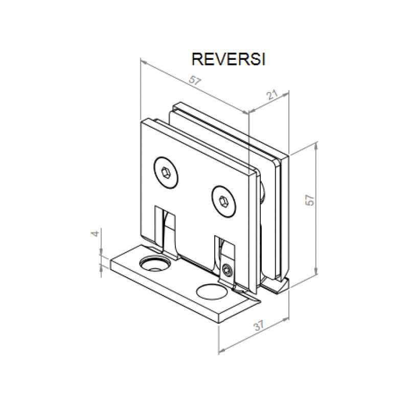 Charnière à rappel REVERSI mur/glace, à demi-platine murale.Position de rappel réglable en continu sur +/- 90°.Plage de fermeture automatique de +/- 30°.Fabriquée en bronze d'aluminium (alliage 2,5 fois plus résistant que du laiton ou de l'inox).Livrée avec jeux de cales en aluminium.Montage avec encoche dans le verre.Jeu de 2 charnières.
