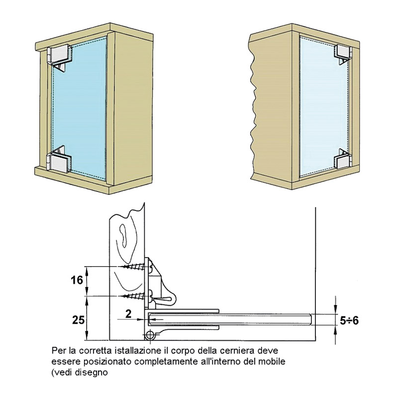 Charnière pour porte verre épaisseur 5 à 6 mm, avec arrêt.